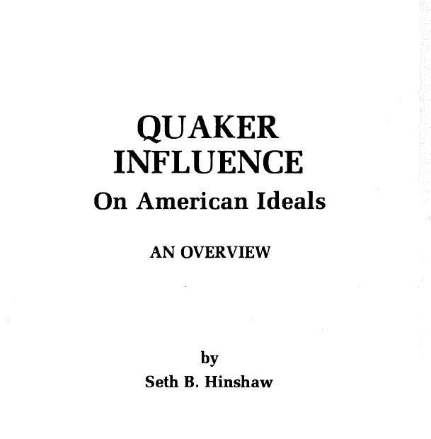 Click below to read a PDF copy of Quaker Influence on American Ideals by Seth B. Hinshaw.